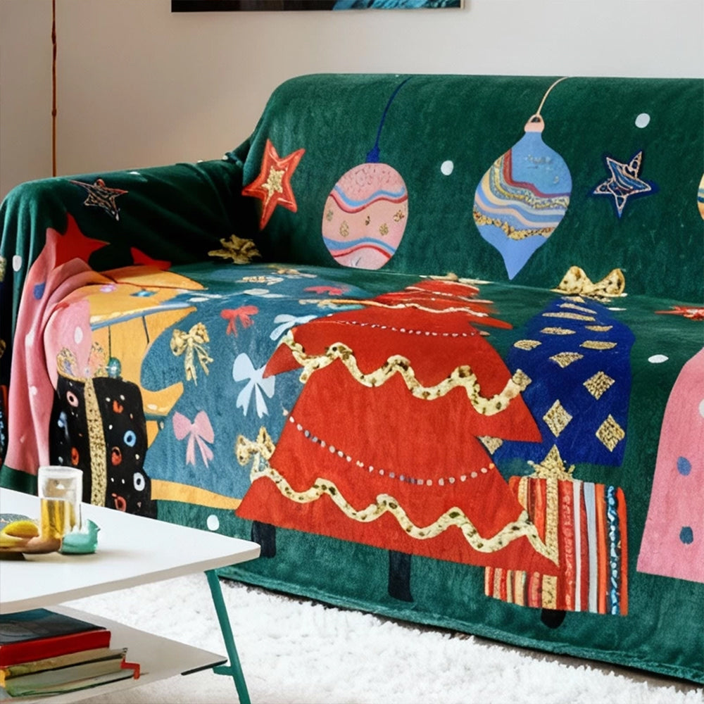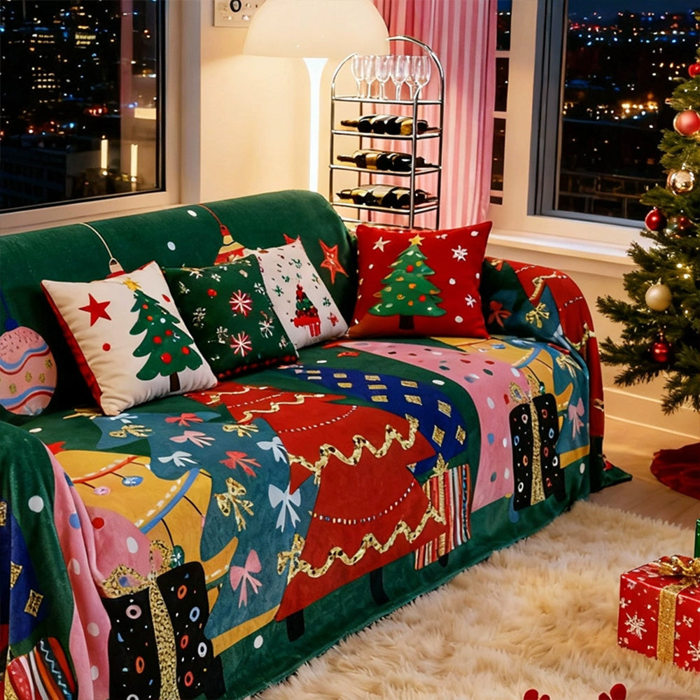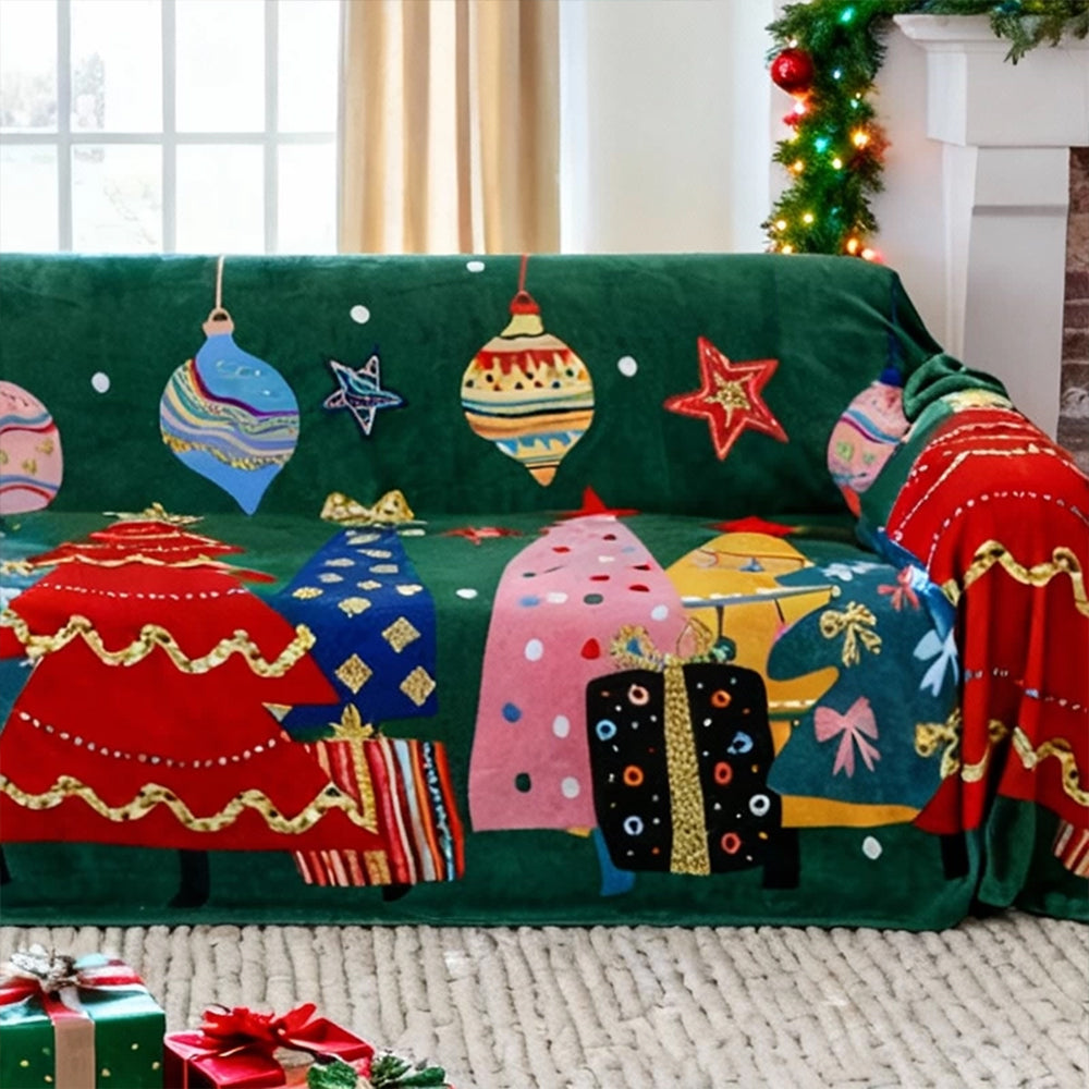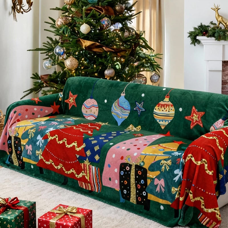 Bring joyful holiday warmth to your home with our Holiday Charm Plush Sofa/Couch Cover. Featuring playful Christmas ornaments, gift boxes, and festive tree motifs, this cover transforms your living room into a cozy Christmas wonderland. Crafted from ultra-soft, pet-friendly plush fabric, it delivers both comfort and reliable protection from stains, pet fur, and scratches.