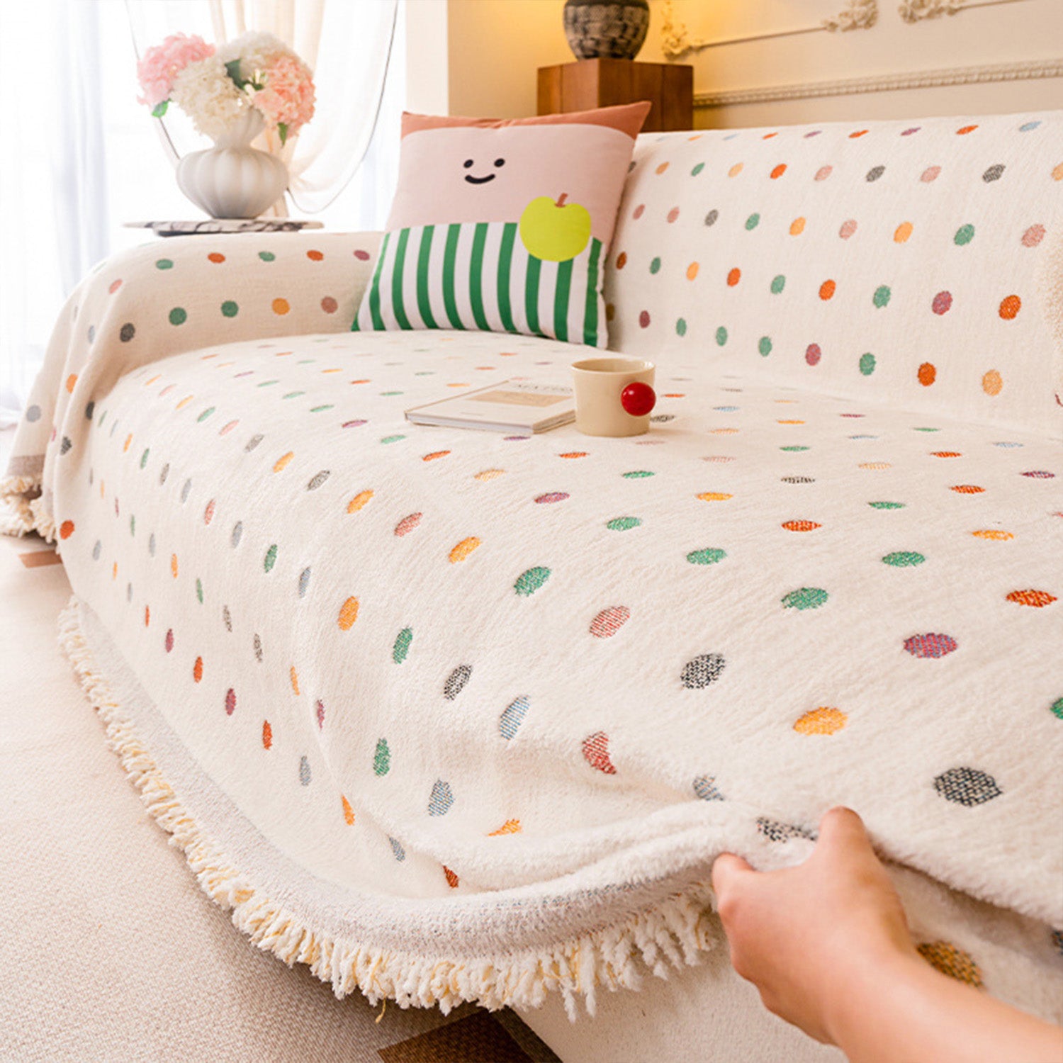 Color Dot Chenille Scratch-Resistant Sofa/Couch Cover