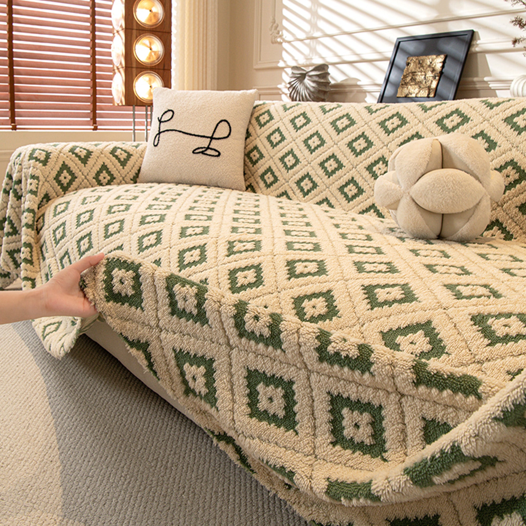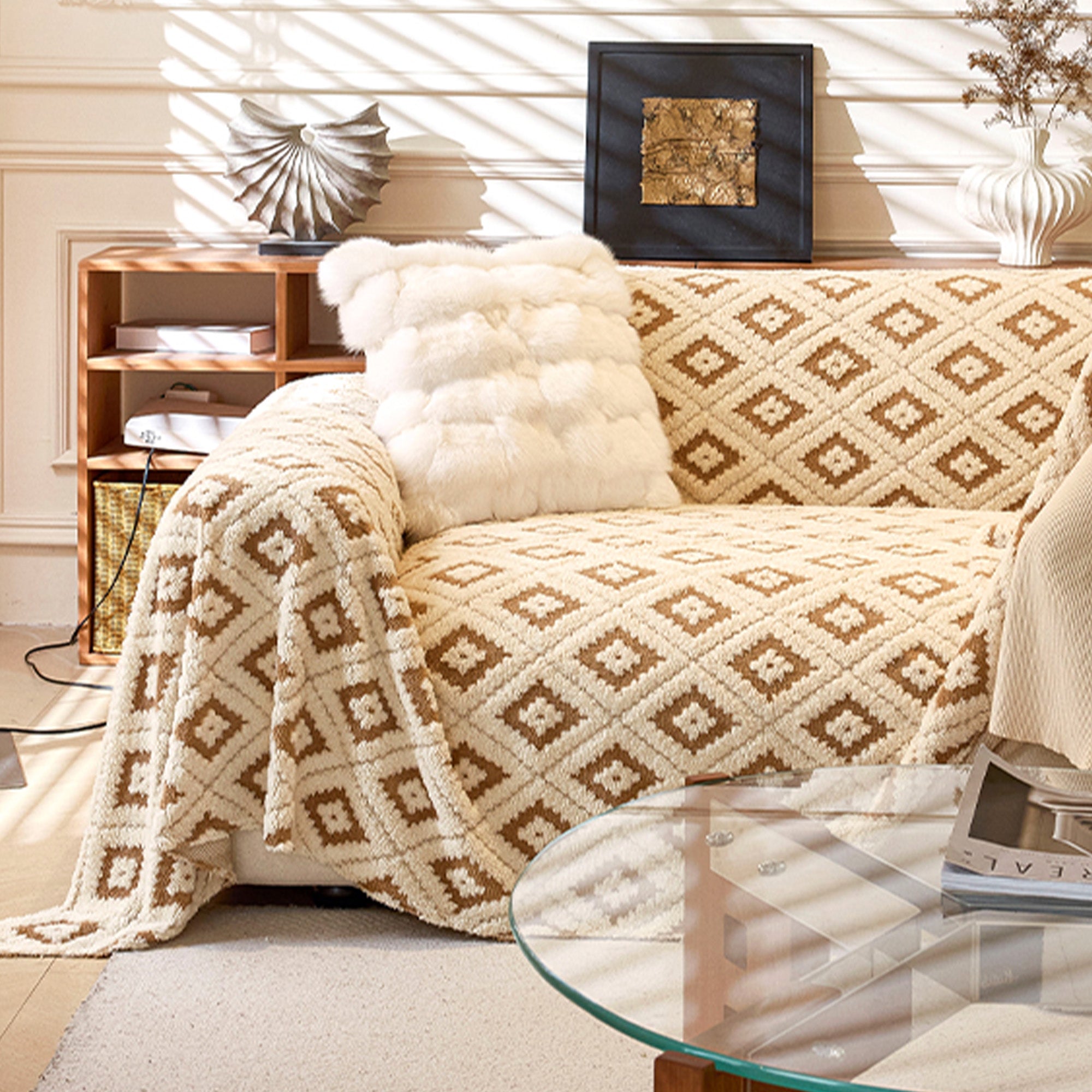 Elegant Diamond Plush Scratch-Resistant Sofa/Couch Cover