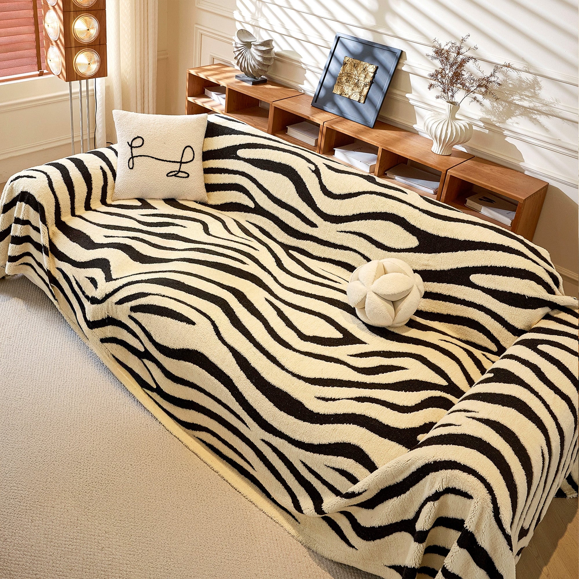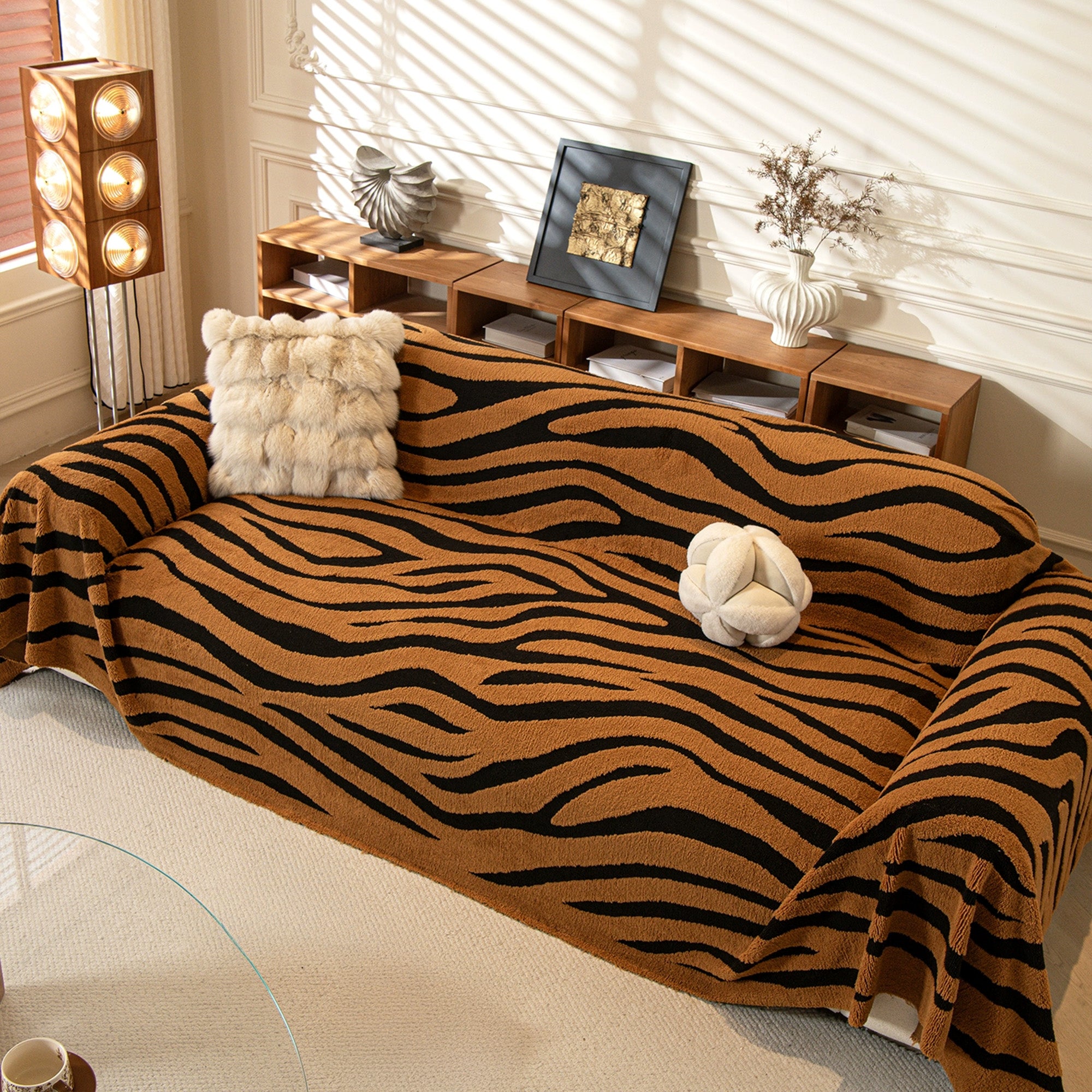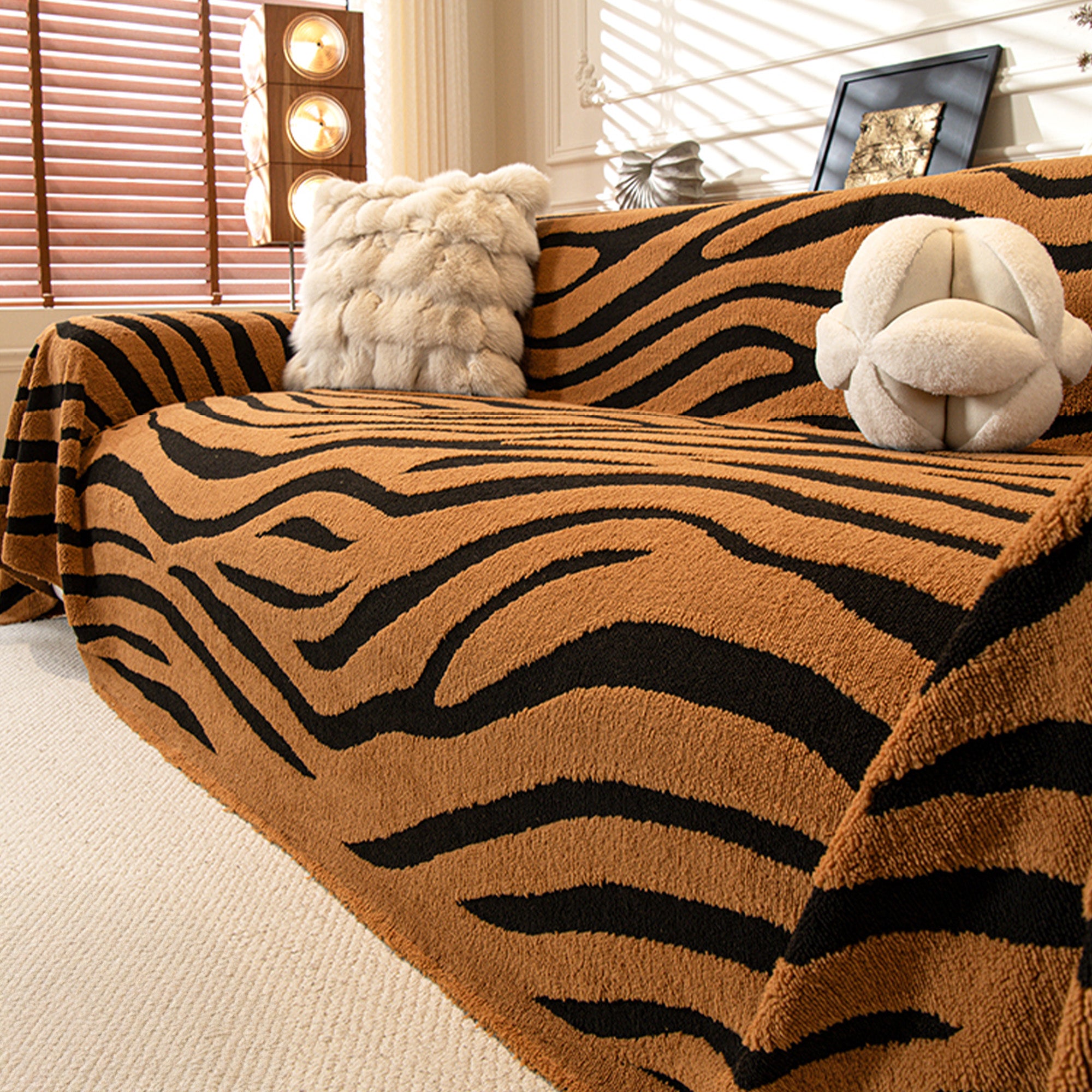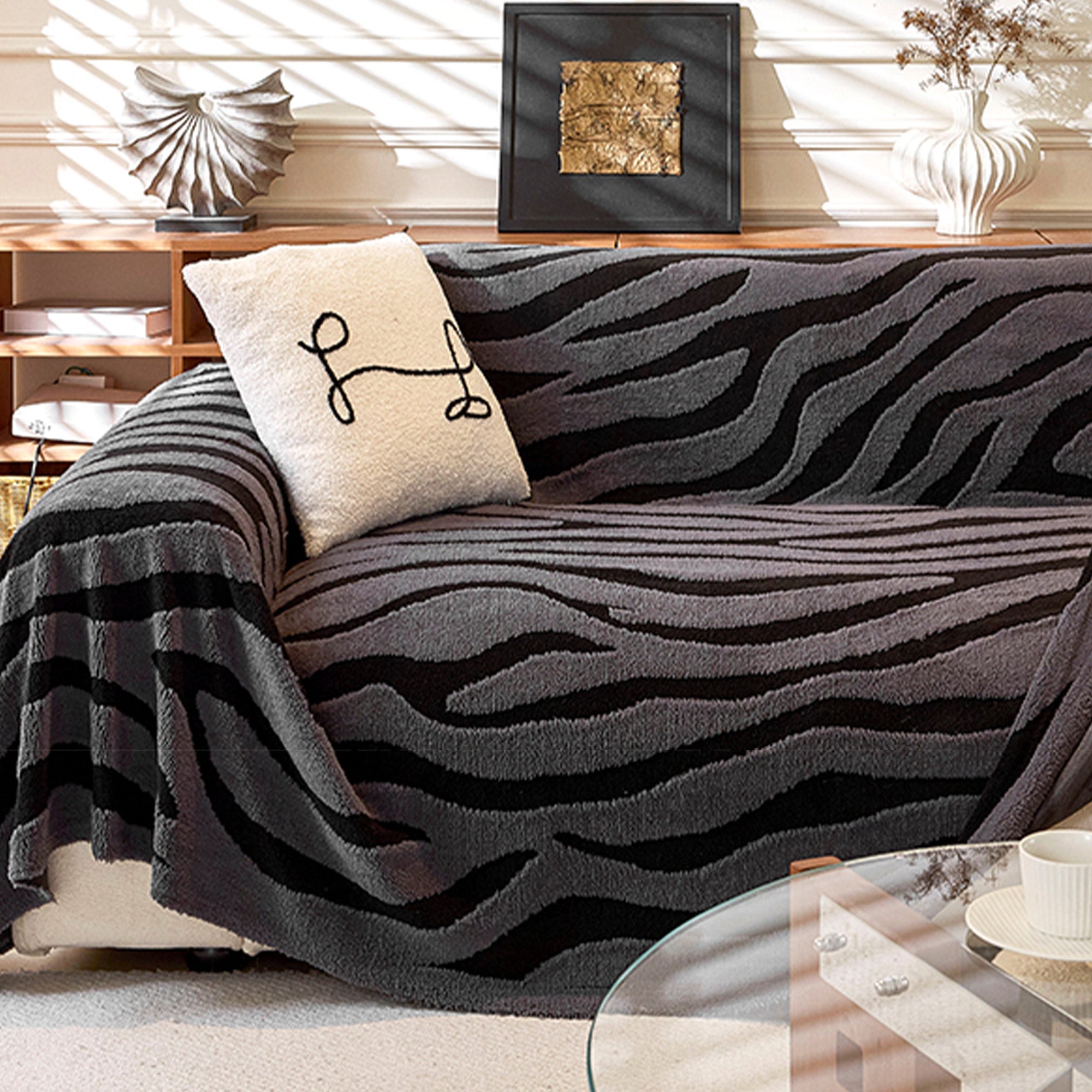 Plush Zebra Chenille Scratch-Resistant Sofa/Couch Cover