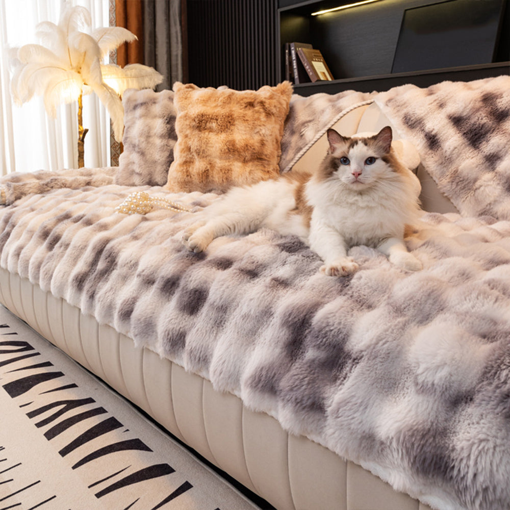 Bring modern warmth and soft luxury into your living space with our Gradient Bubble Faux-Rabbit Nonslip Sofa/Couch Cover. Featuring a unique gradient color transition and a plush bubble-textured surface, this cover offers both style and comfort for the colder months. The thick faux-rabbit fur delivers a velvety touch that instantly elevates your home décor, while the nonslip backing ensures it stays securely in place. Perfect for cozy evenings, it provides both elegance and practical protection for your furniture.