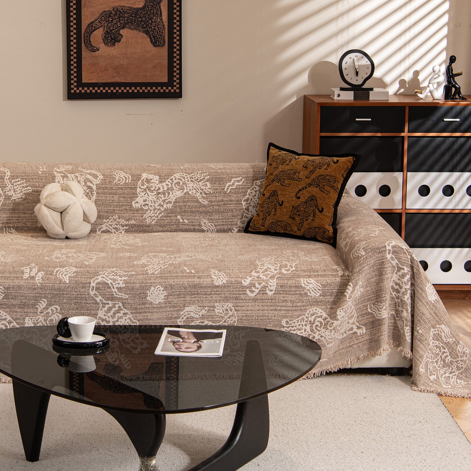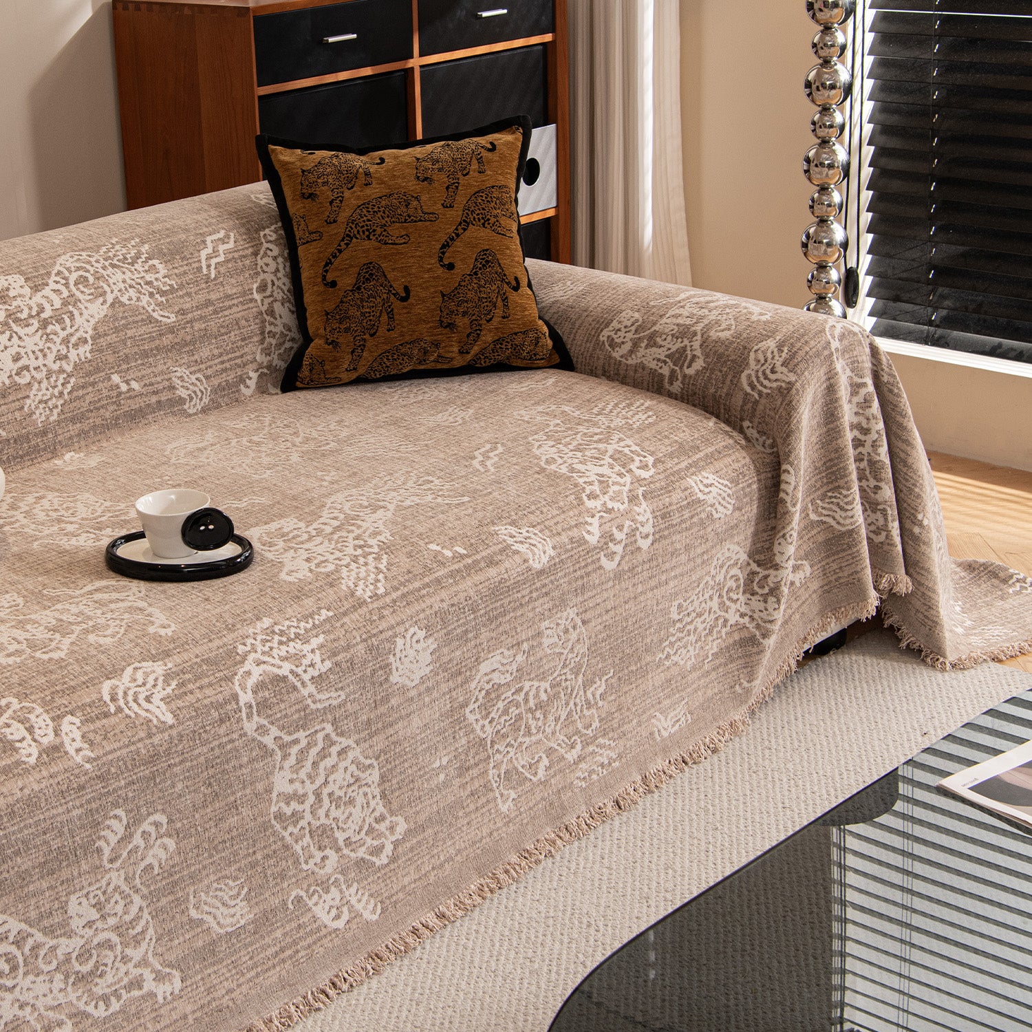 Elevate your home with the timeless charm of our Vintage Crest Chenille Scratch-Resistant Sofa/Couch Cover. Inspired by classic retro motifs, this cover blends artistic texture with modern practicality, creating a warm and sophisticated atmosphere in any living space.