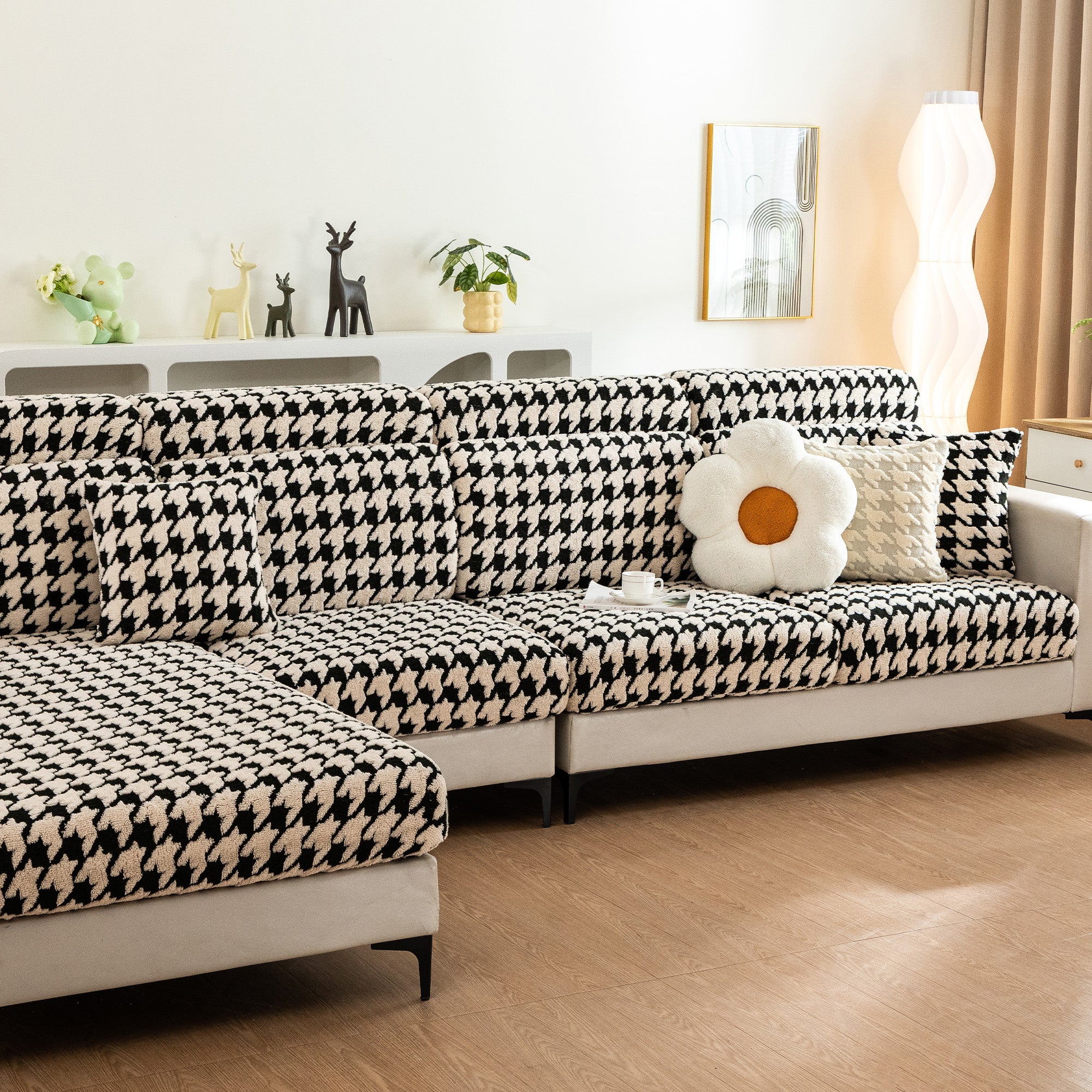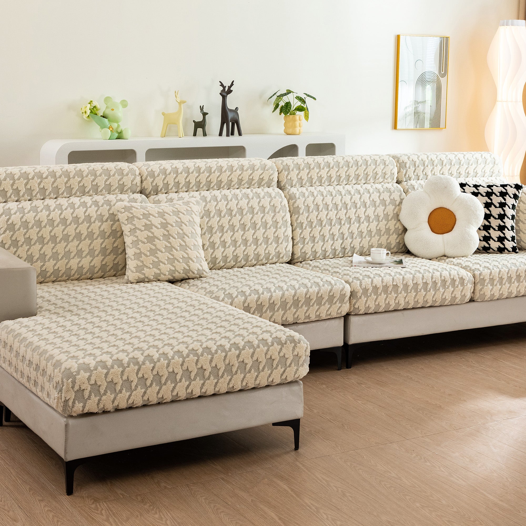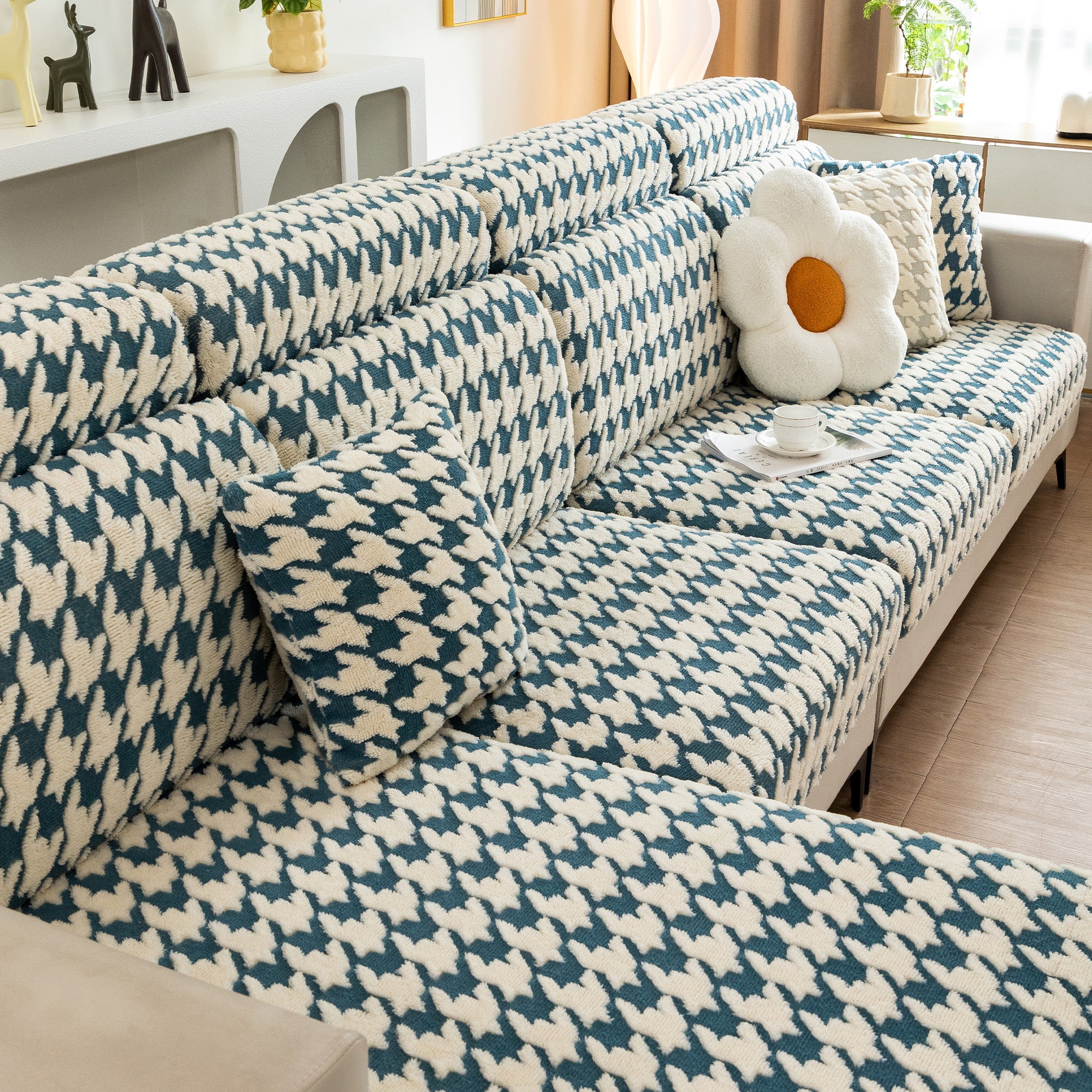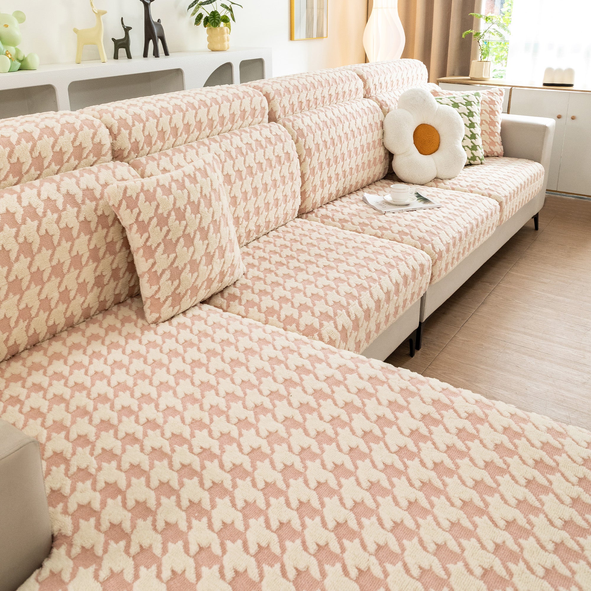 Classic Houndstooth Fleece Stretch Sofa Cover – Anti-Scratch, Full-Cover Pet Protector