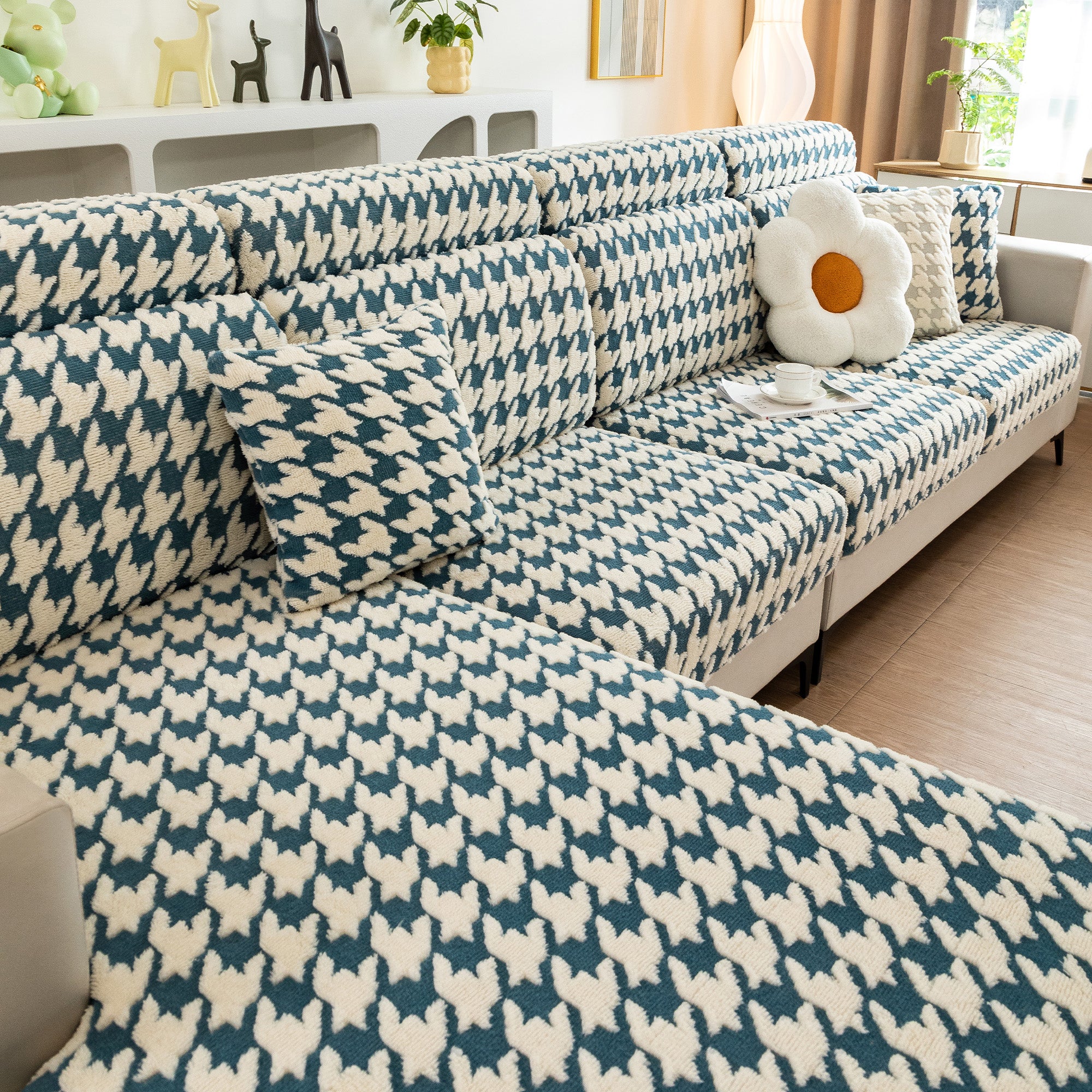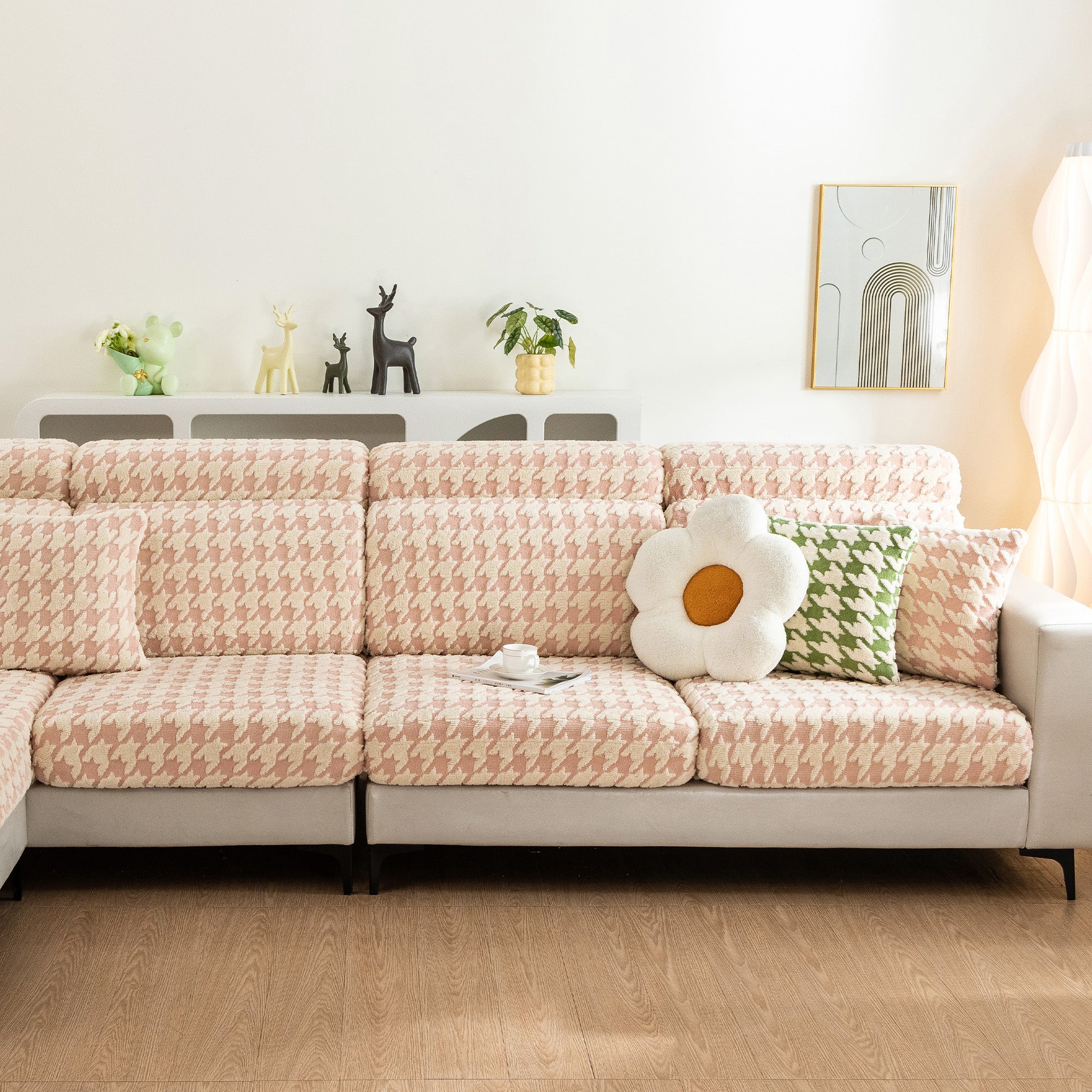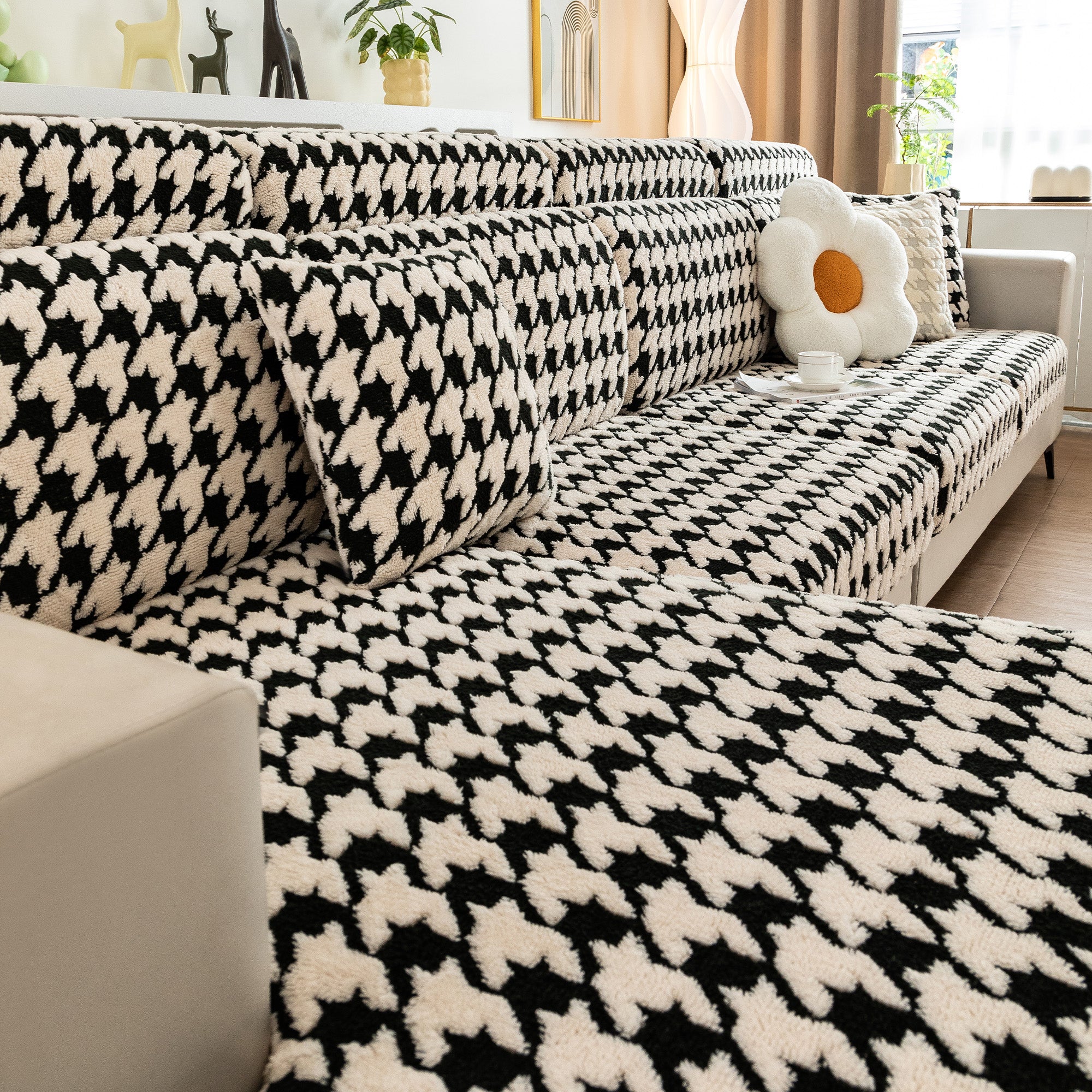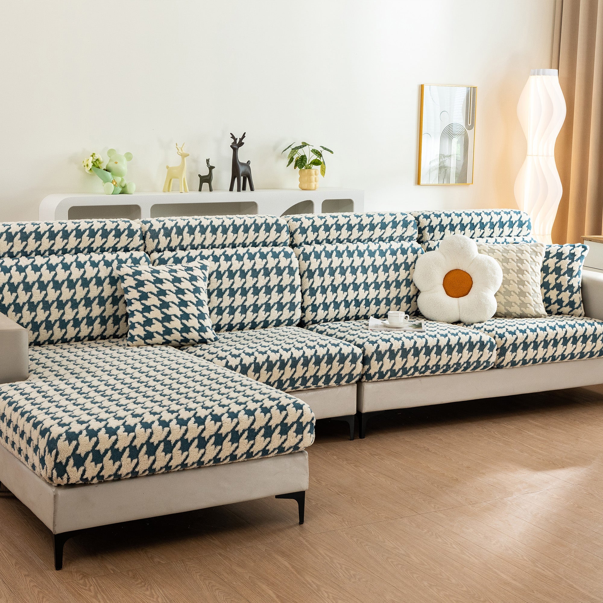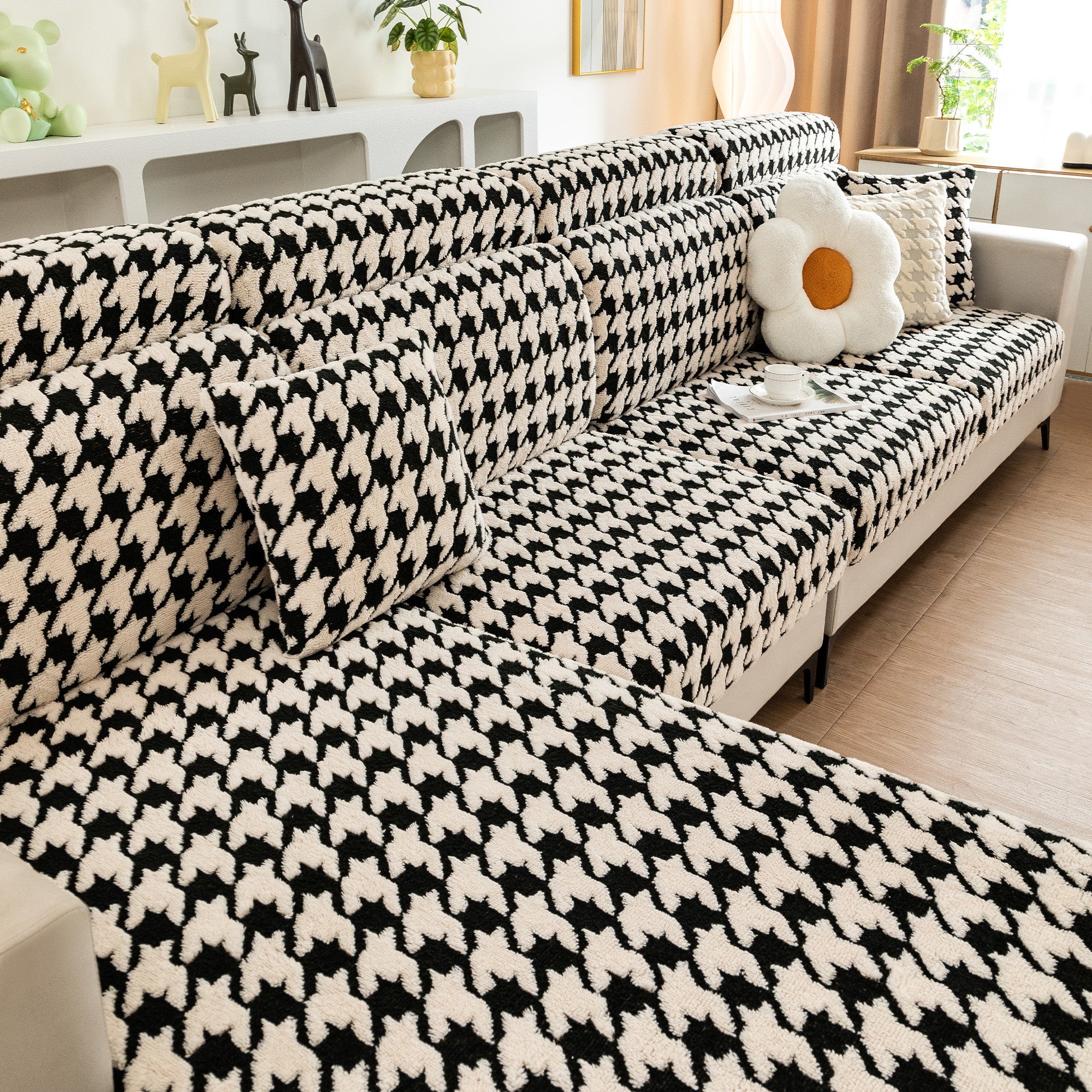 Classic Houndstooth Fleece Stretch Sofa Cover – Anti-Scratch, Full-Cover Pet Protector