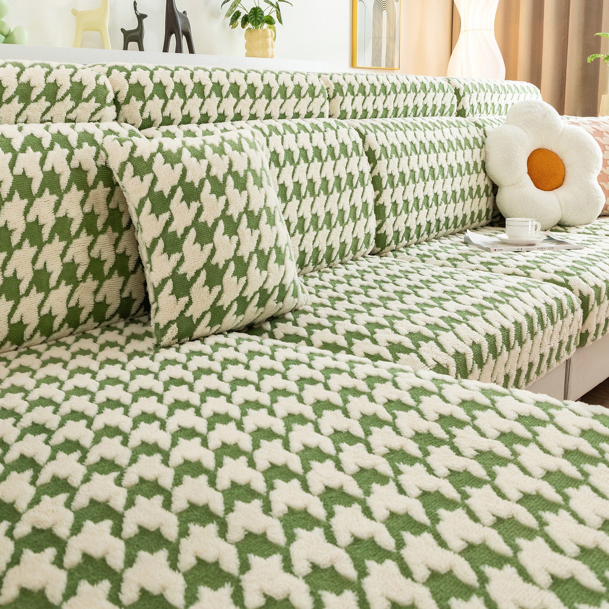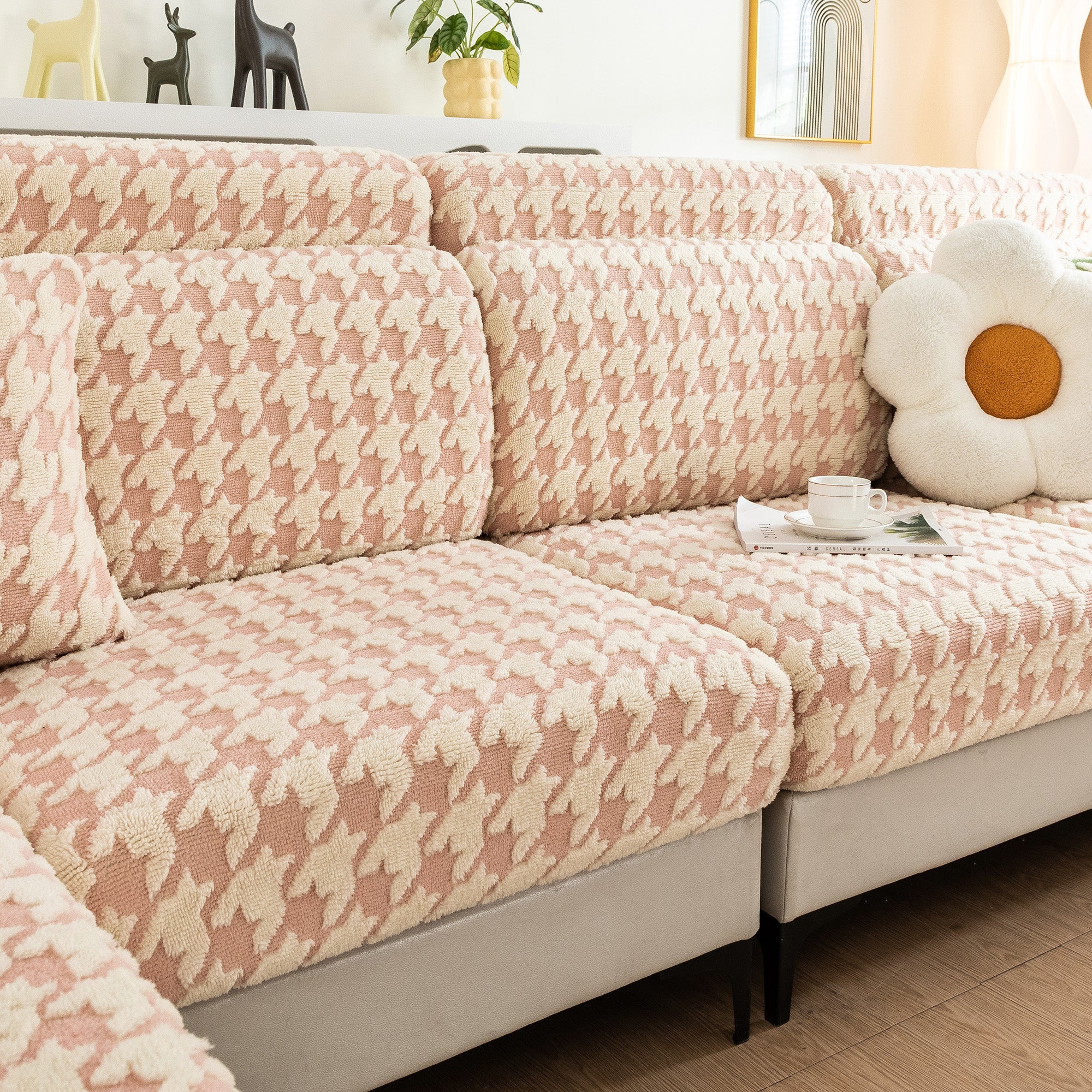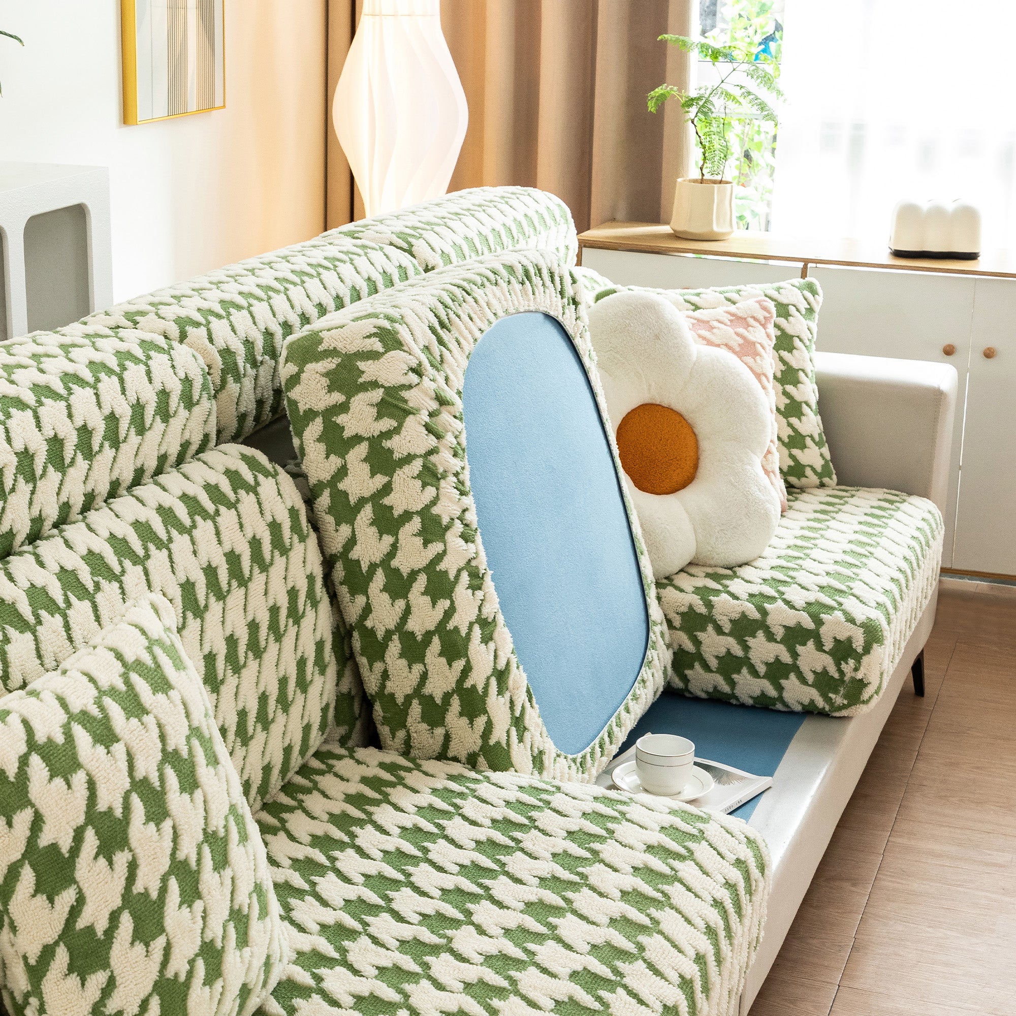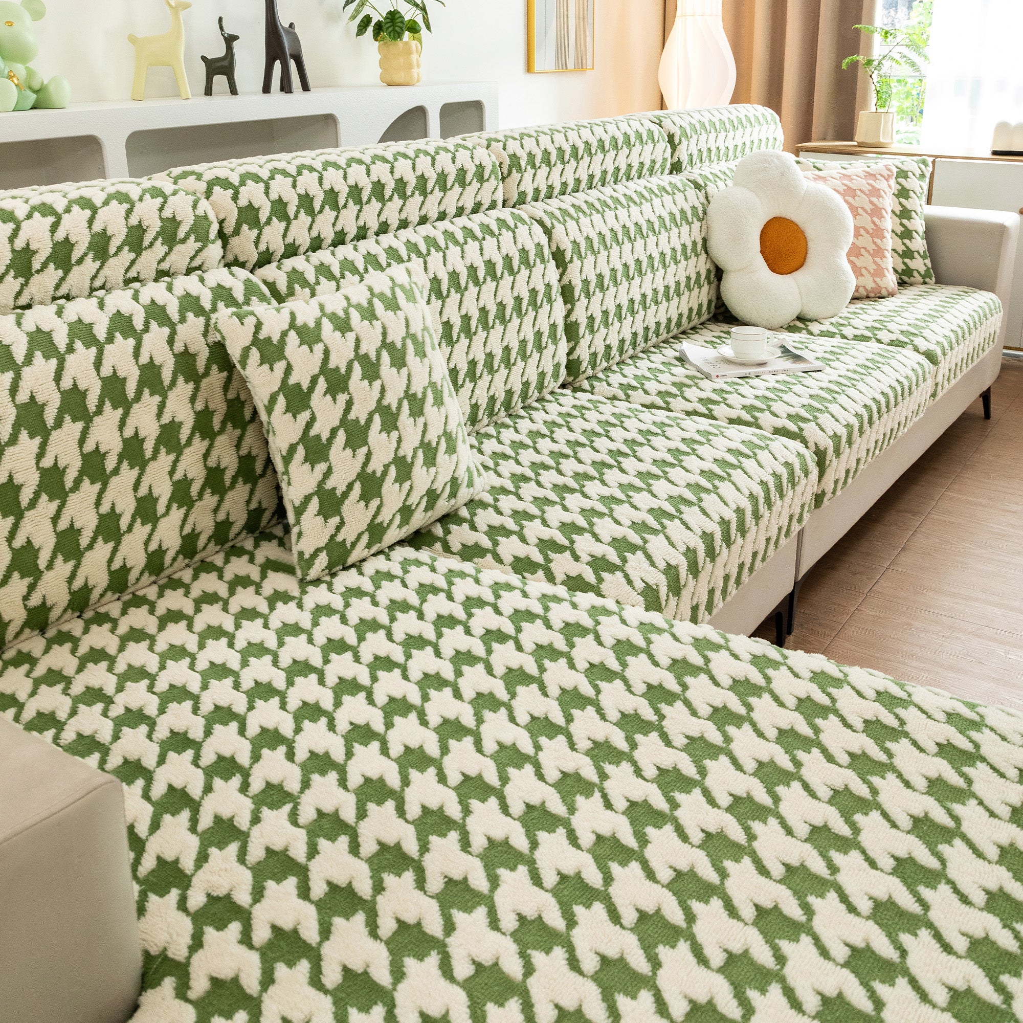 Classic Houndstooth Fleece Stretch Sofa Cover – Anti-Scratch, Full-Cover Pet Protector
