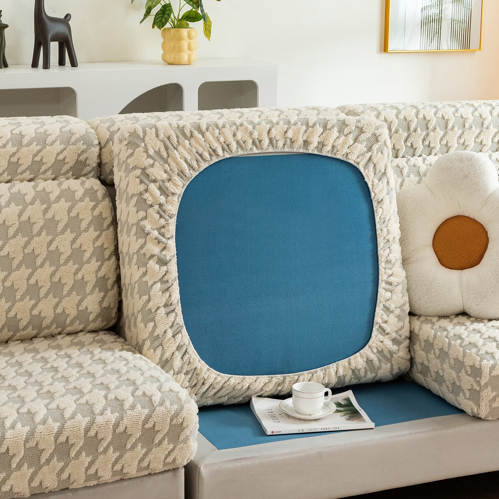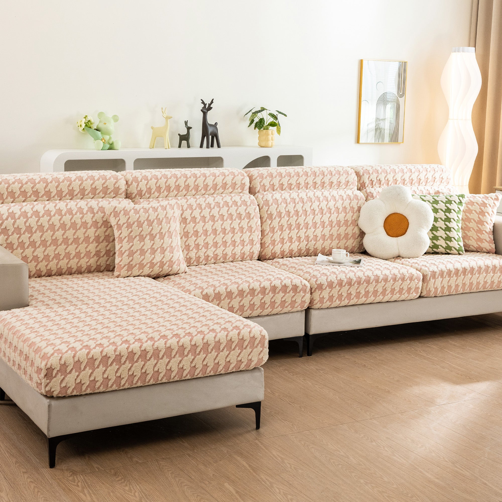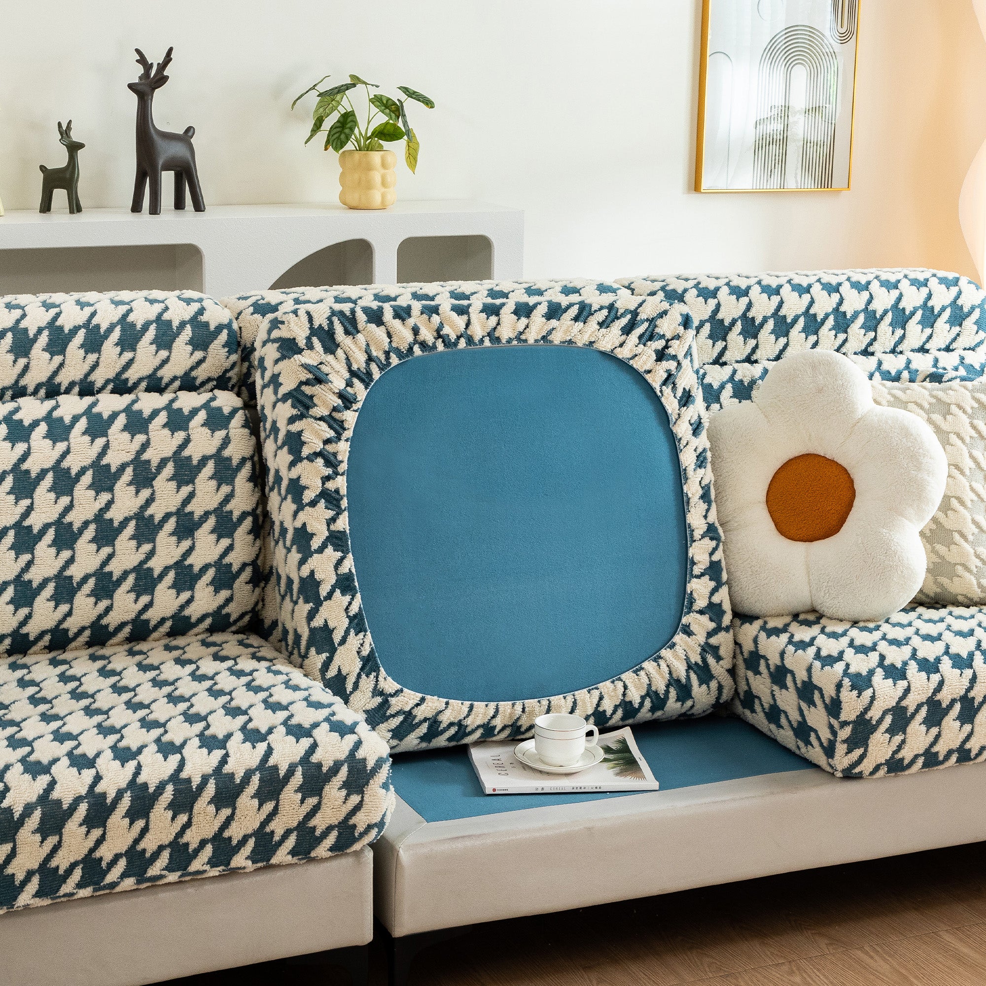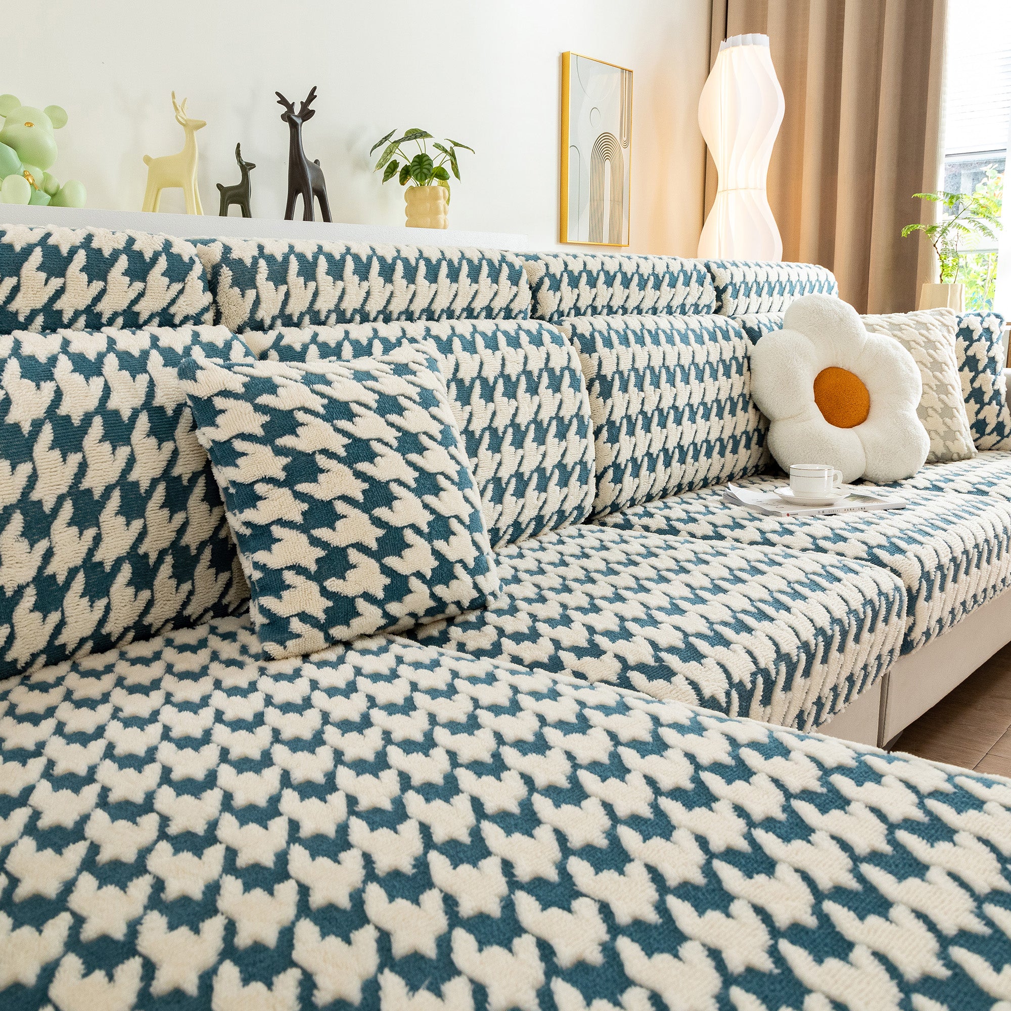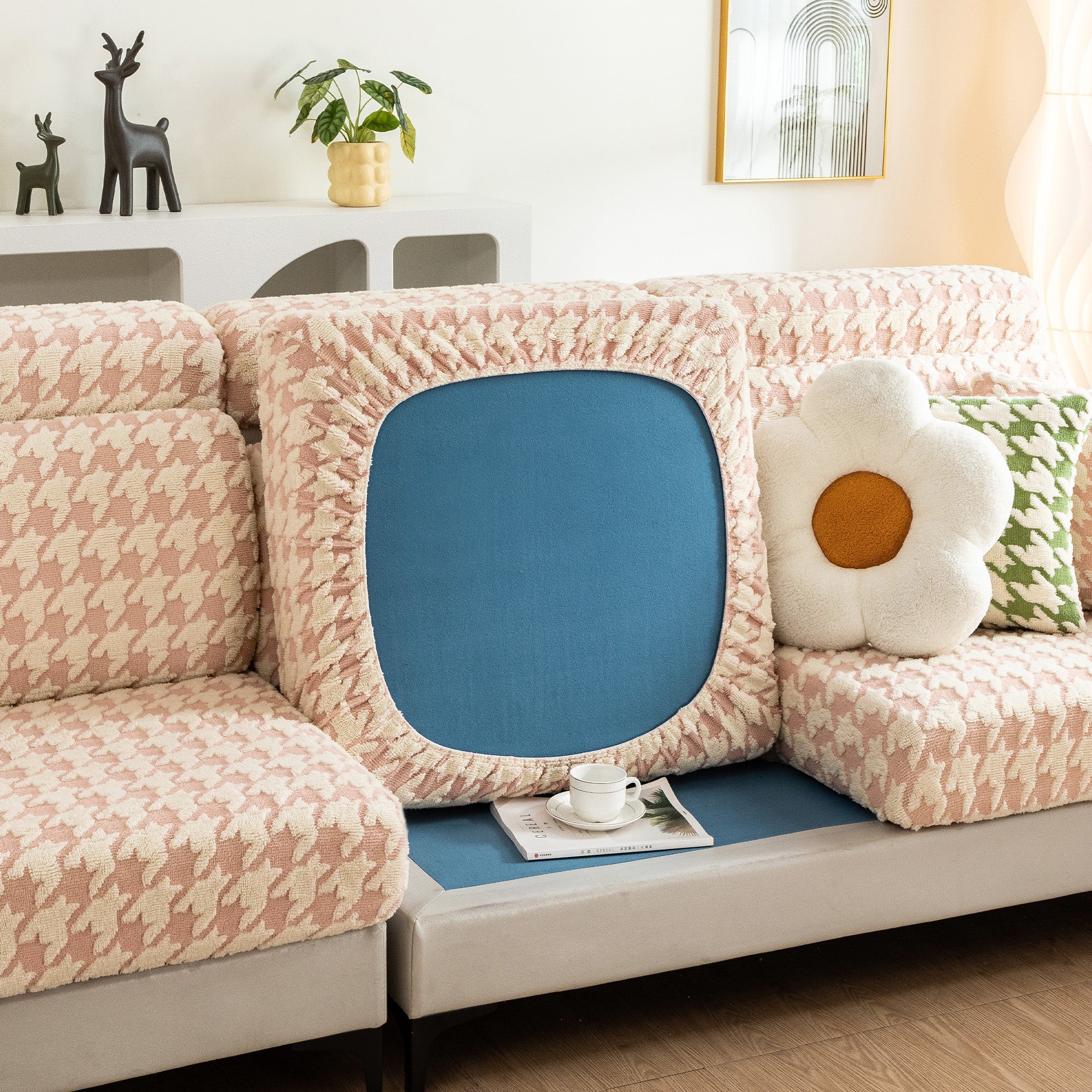Classic Houndstooth Fleece Stretch Sofa Cover – Anti-Scratch, Full-Cover Pet Protector