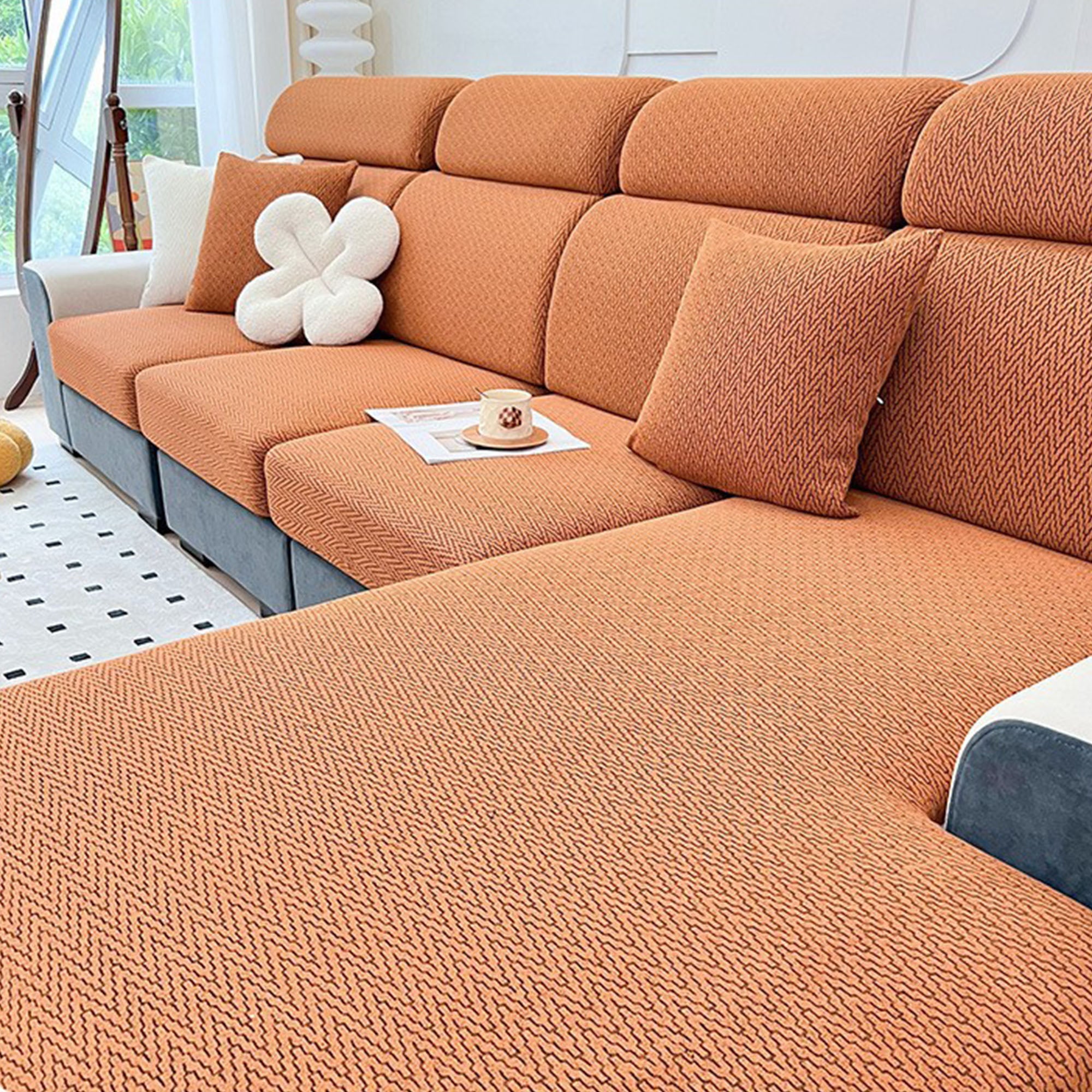 Elegant Chevron Jacquard All-Season Stretch Sofa Cover – Full Wrap, Anti-Slip & Anti-Scratch Protection