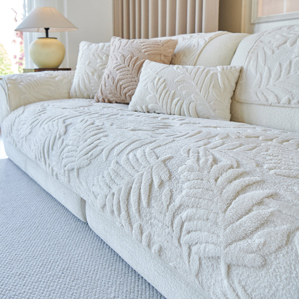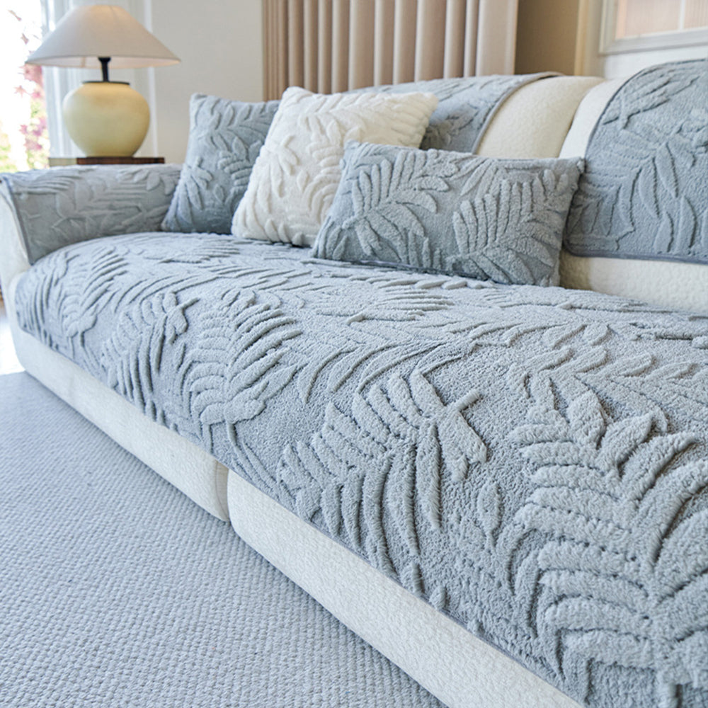 Plush Leaf Chenille Nonslip Sofa Cover