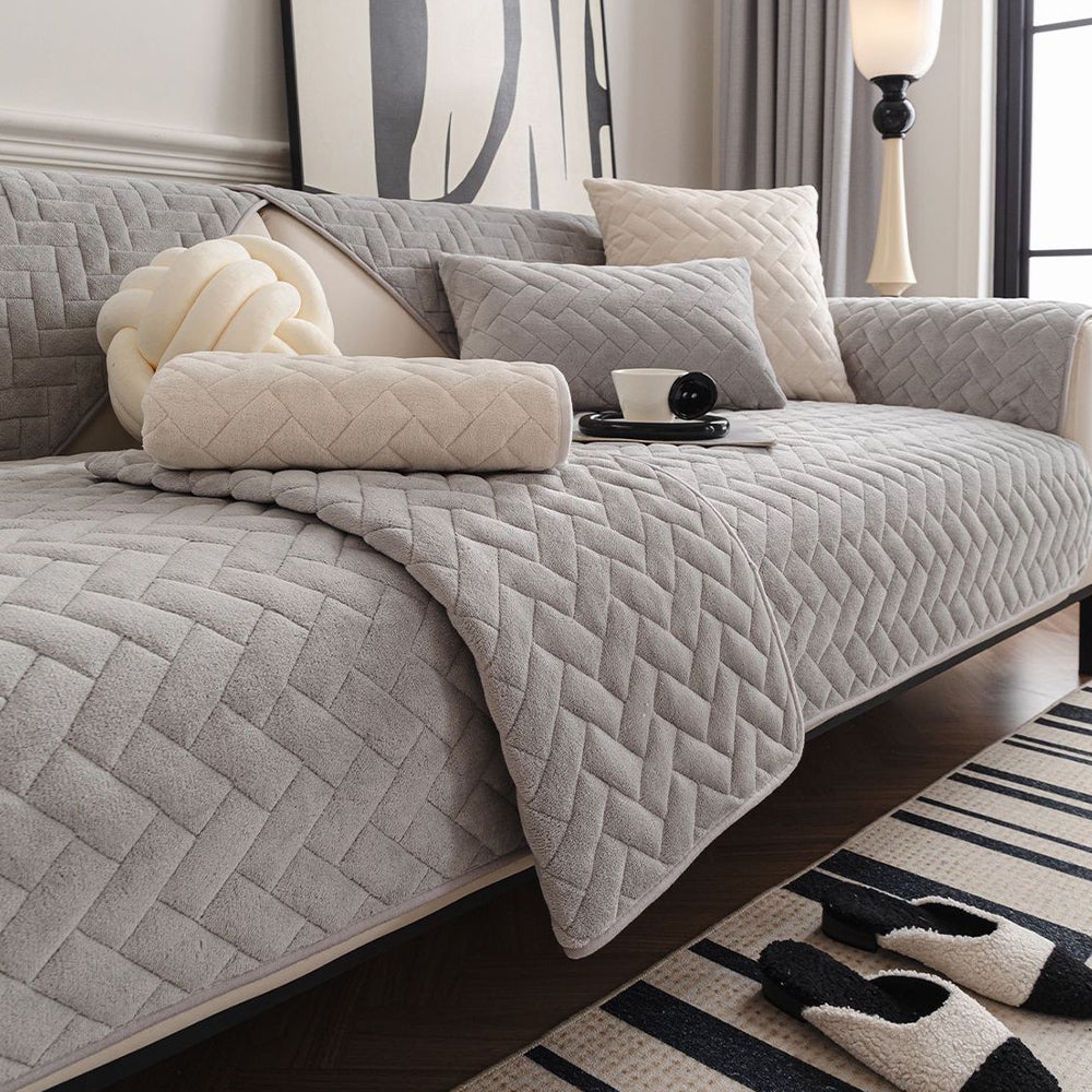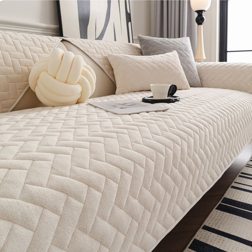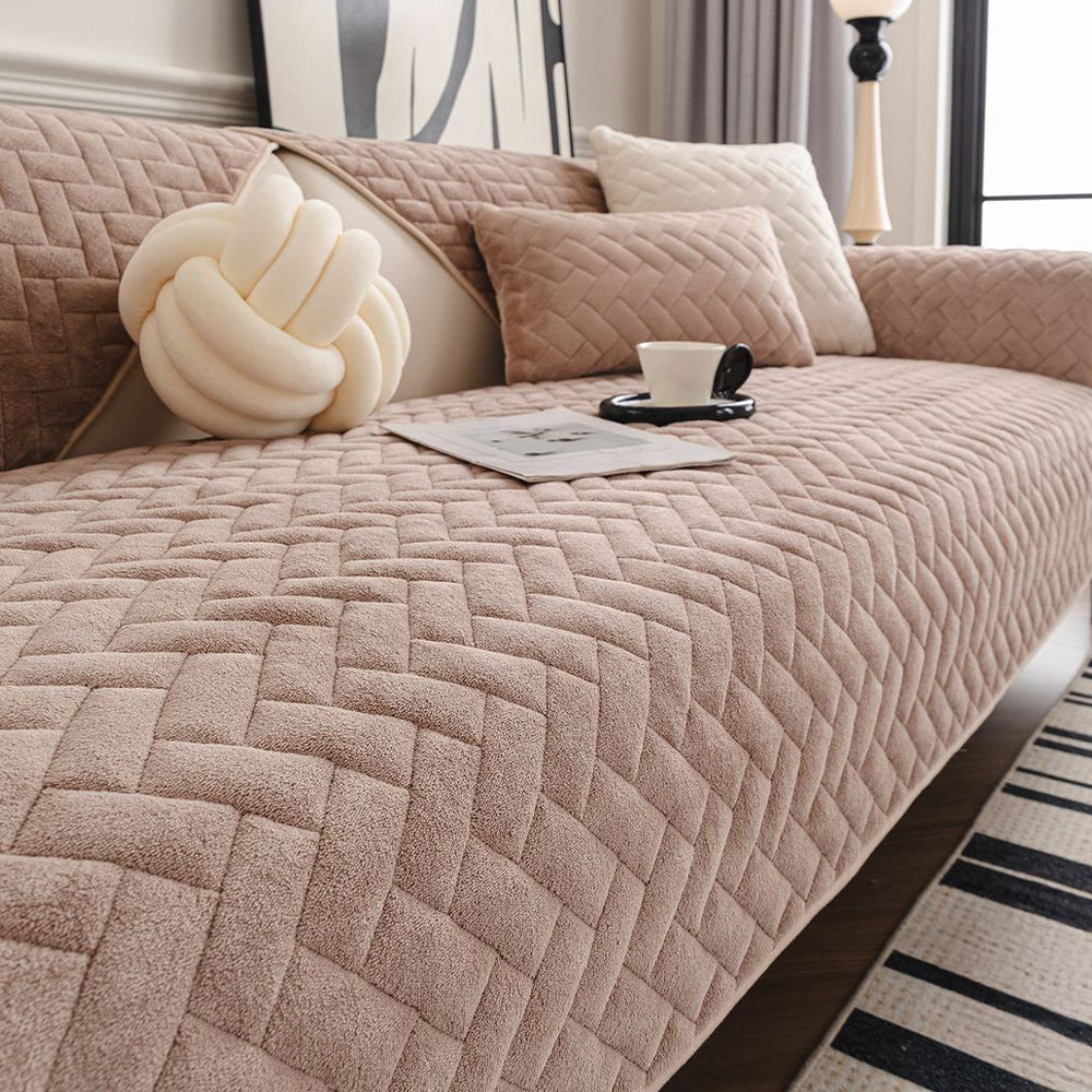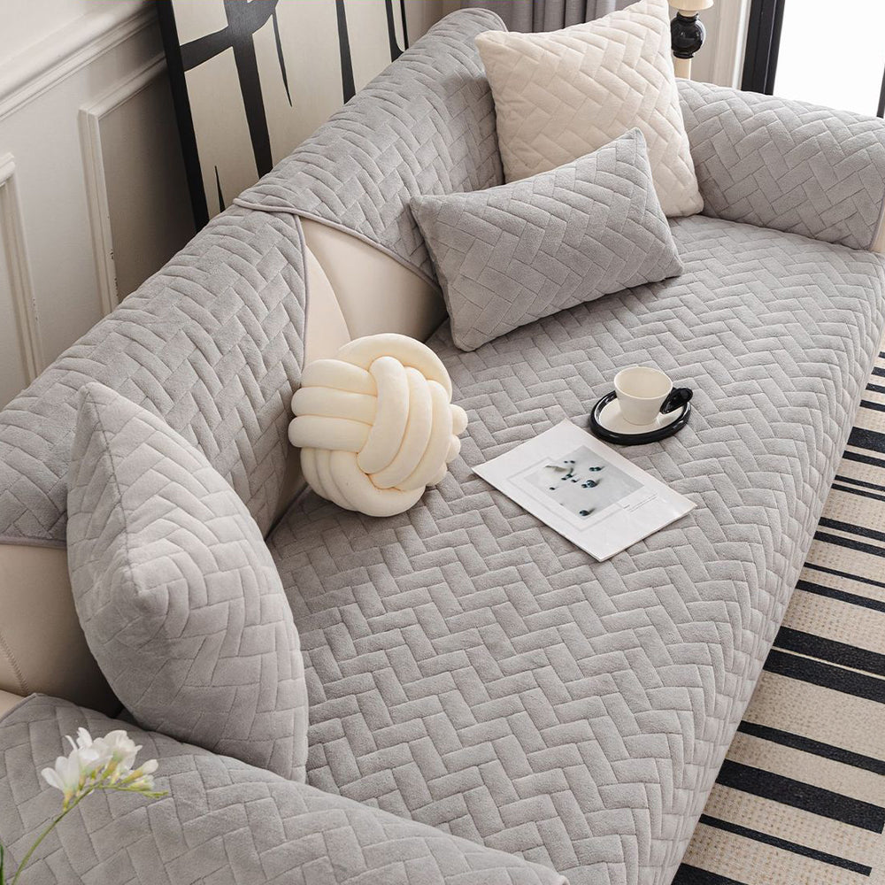 Plush Velvet Herringbone Nonslip Sofa Cover