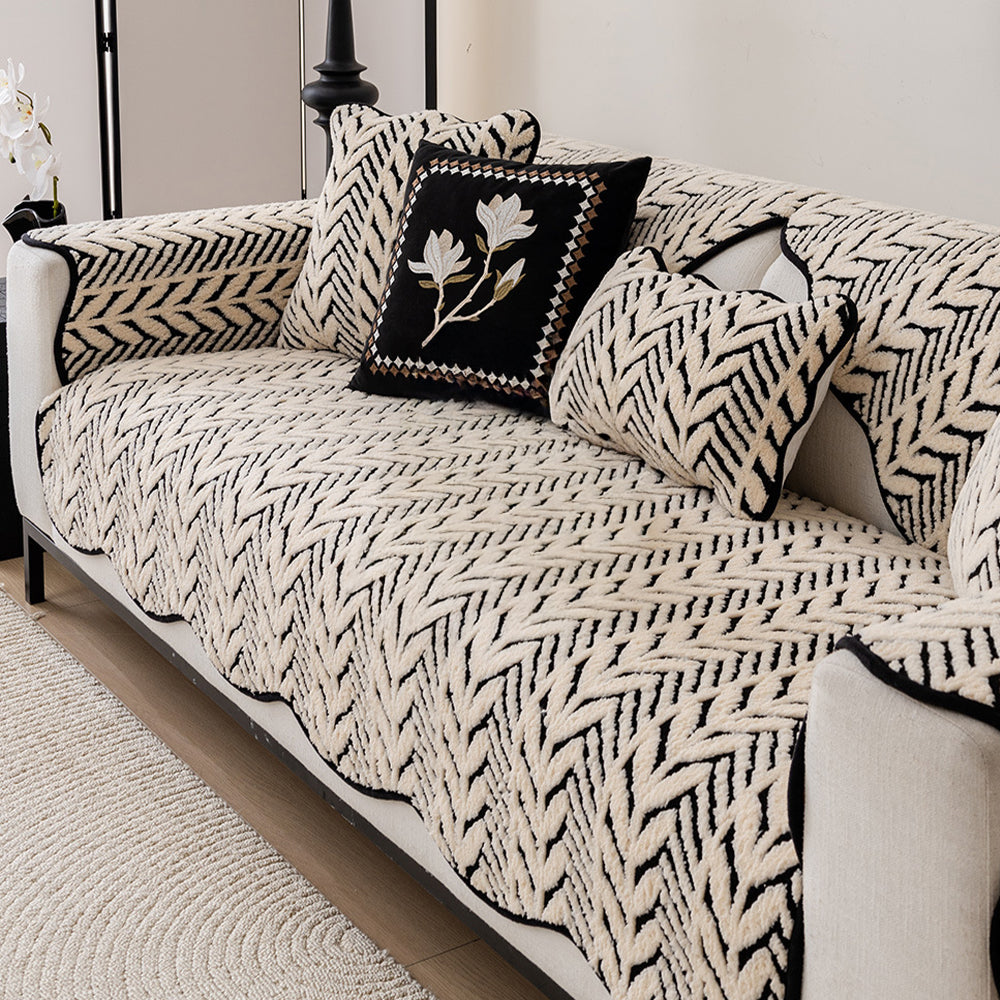 Retro Herringbone Plush Non-Slip Sofa Cover